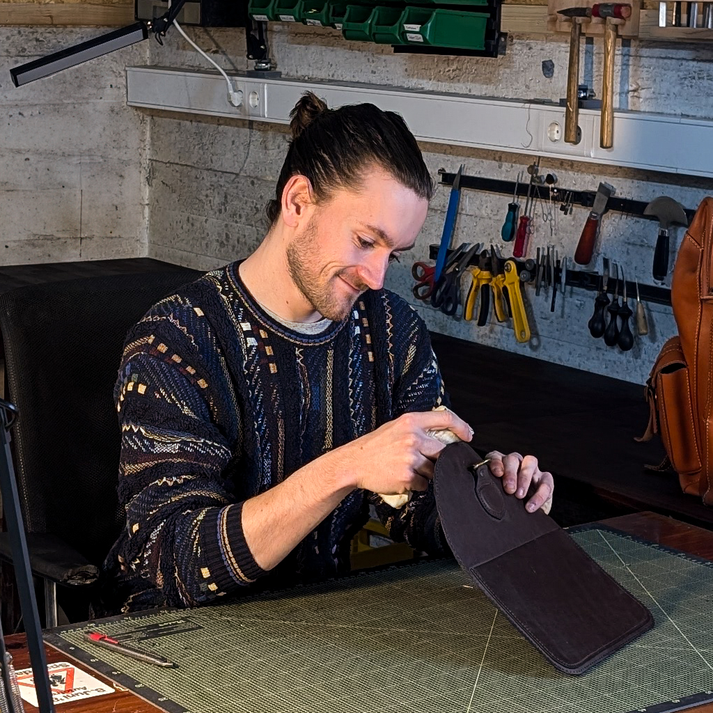 Ich entwerfe und fertige jedes Stück selbst, nicht um Trends hinterherzujagen, sondern um Dinge zu schaffen, die Bestand haben. Auch heute noch trage ich die erste Tasche, die ich hergestellt habe, und viele Erinnerungen mit verbinde. Genau dieses Gefühl möchte ich auch weitergeben. Dinge, an denen man hängen bleibt. Denn die besten Taschen trägt man nicht nur, sie begleiten einen ein Leben lang und sind etwas die einem ans Herz wachsen.
