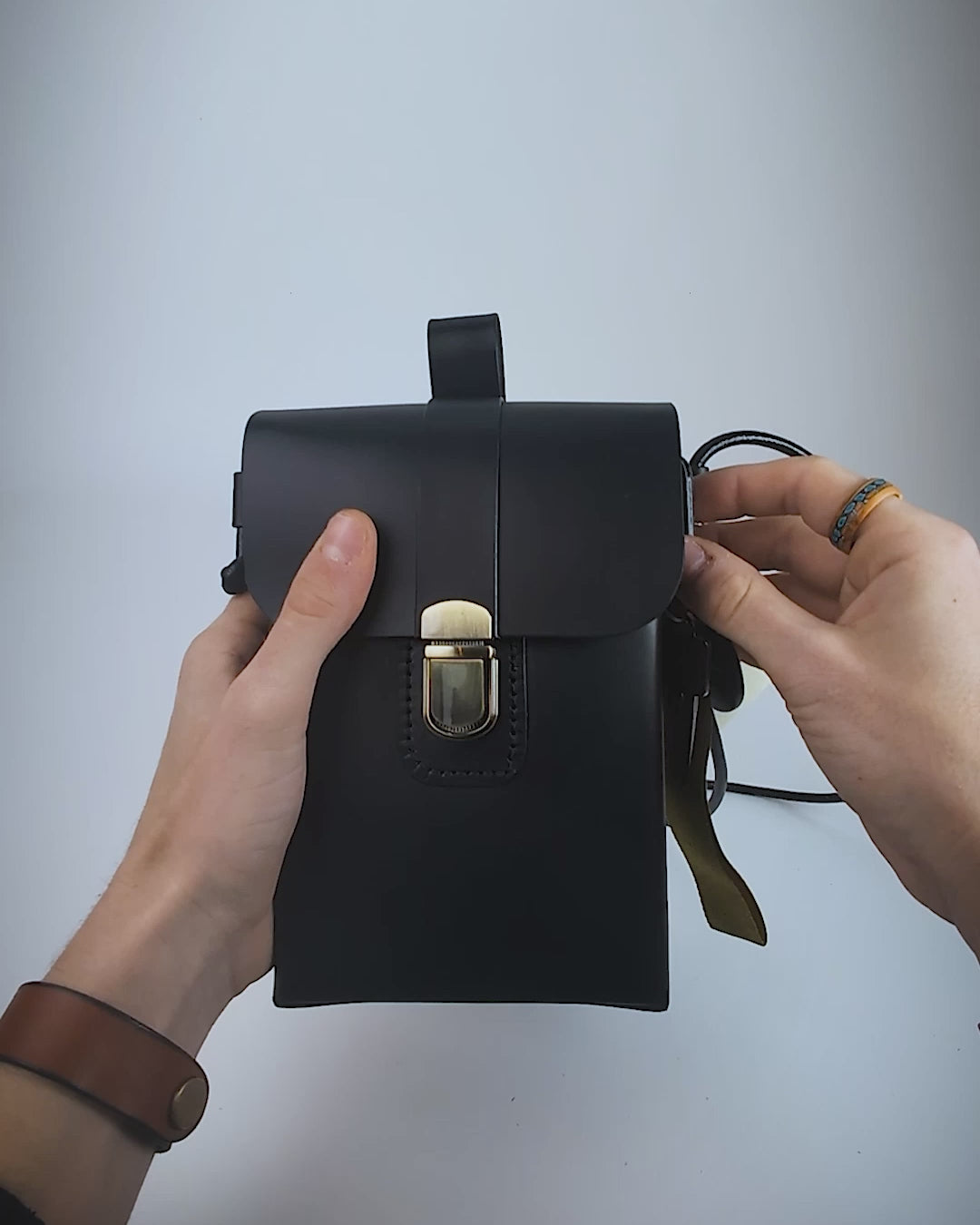Werten deine Alltagsutensilien mit dieser sorgfältig handgefertigten Leder-Umhängetasche auf, die für alle entwickelt wurde, die klare Linien, scharfe Kanten und einen strukturierten, kastenförmigen Stil lieben. Mit einer praktischen Rückentasche und einer sicheren Schnalle verbindet diese Tasche zeitlose Handwerkskunst mit moderner Funktionalität, perfekt für tägliche Abenteuer, Festivals oder Reisen.